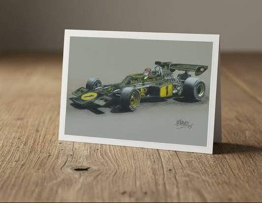 70s F1 Legends greatings cards. Pack of 10 (5x Emerson Fittipaldi & 5x Jackie Stewart)