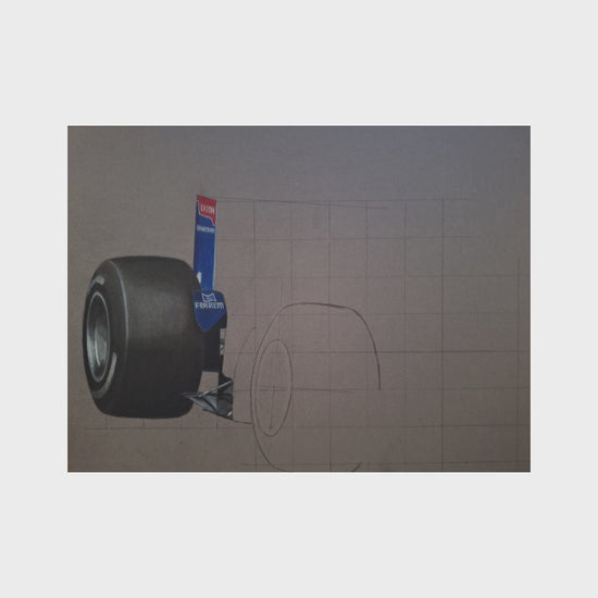 This drawing captures 1996 F1 World Champion driving the Arrows A18 Yamaha while in the lead of the 1997 Hungarian GP. Hill would incredibly lose his 35-second lead to Jacques Villeneuve on the last lap as his car struggled with failing hydraulic pressure, ultimately finishing in second place.