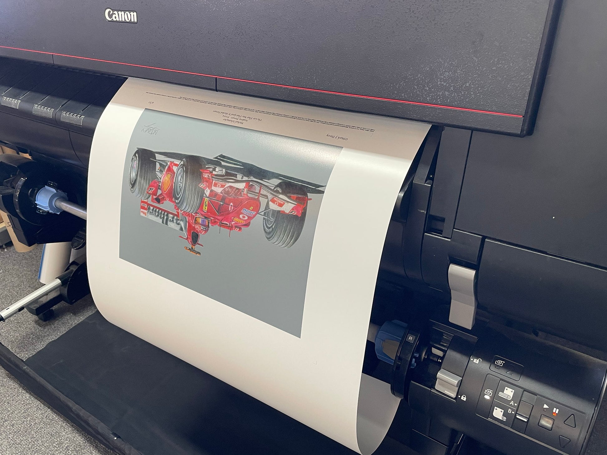 Giclee Print of Michael Schumacher in the mighty Ferrari F2004 by Artist Mark J Davey