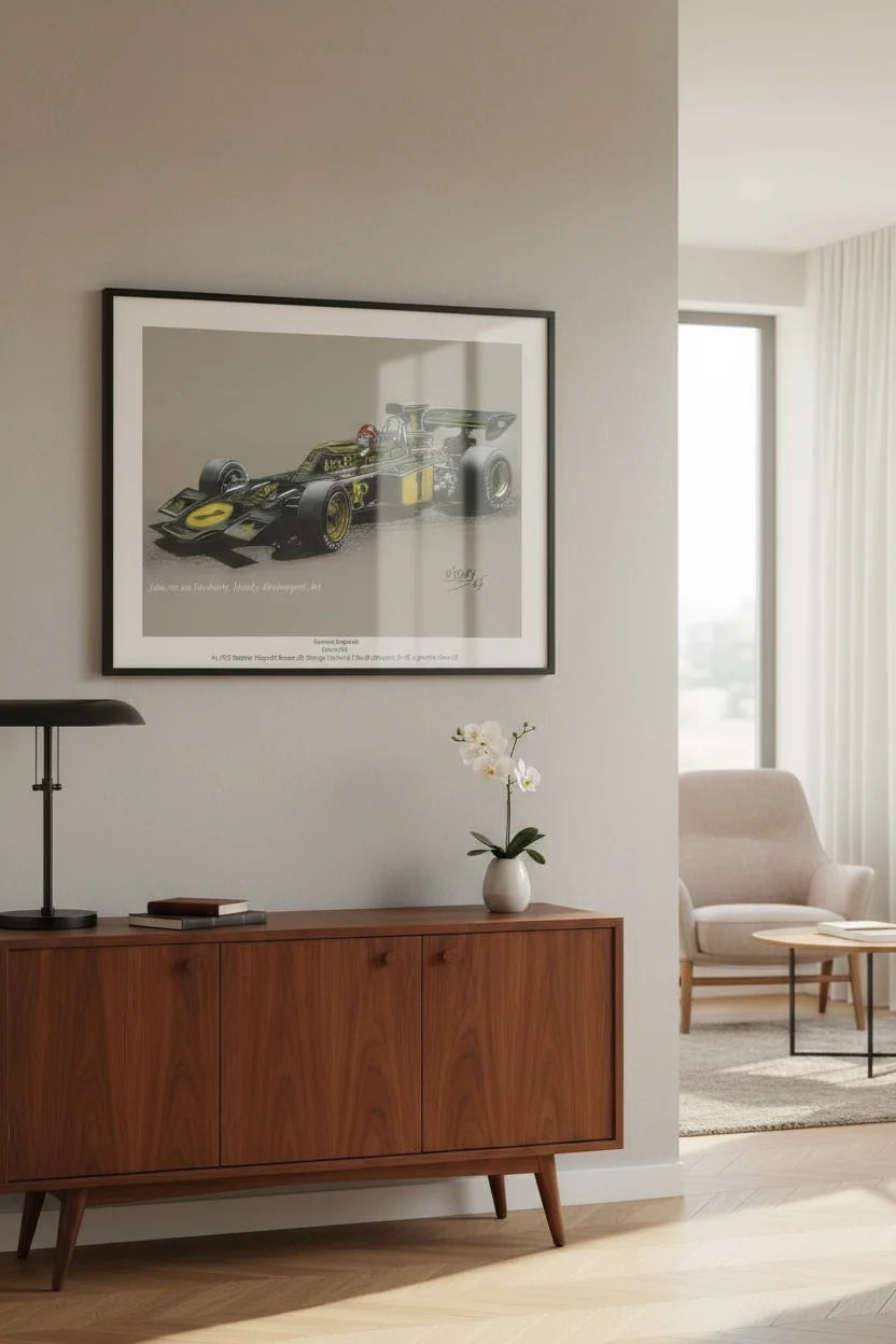 Lotus 72E With Emerson Fittipaldi At The Wheel, Limited Edition Giclee Print With COA.